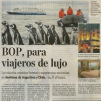 Viajes de lujo a destinos exóticos de Chile y Argentina, donde se viven experiencias únicas en lugares turísticos de la Patagonia y se hace un recorrido por el cabo de Hornos, hacen parte de la oferta de Best of South America (BOP), una alianza de mercadeo que incluye hoteles y cruceros exclusivos de Suramérica.